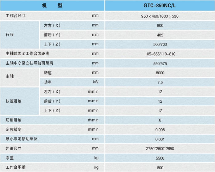硬軌加工中心/線軌加工中心GTC-850NC/L