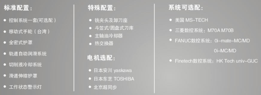 3.高精度進給:三軸硬軌或線軌傳動均采用臺灣專業配套生產廠商提供的C3級雙螺母精密滾珠絲桿),并安裝P4級斜角配對組合的滾珠絲桿專用軸承,確保定位精度和重復定位精度。進給各軸采用高速全伺服驅動,保證機床快速移動。配置自動潤滑系統,保證長時間使用的精度和壽命。配置日本三菱系統,人機界面友好、穩定性高、是模具、壓鑄、通訊、手機行業緊密零件部分批量加工之首選。