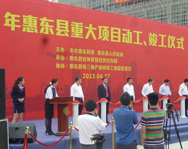 2013年4月27日上午,惠東縣舉行2013年重大項目動工、竣工儀式。惠州市委常委、組織部長王開洲,市政協副主席許玩宏、惠東縣黨政四套班子領導參加儀式。