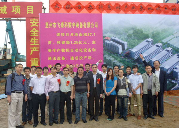 2013年4月27日,對于惠州市飛泰科數字裝備有限公司來說,是個值得慶祝的日子。飛泰科惠州產業基地就在這一天破土動工。該項目占地面積37.1畝,投資額1.25億元,主要生產數控自動化設備和通訊設備。建成投產后,預計年產值2.3億元,工業稅收約930萬元,容納勞動就業人數600人。